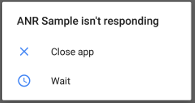 ์ ํ๋ฆฌ์ผ์ด์ ์ Main Thread๊ฐ ์ผ์ ์๊ฐ ์ด์ ์ฐจ๋จ๋์ด ์ฌ์ฉ์์ ์ํธ์์ฉ์ด ๋ถ๊ฐ๋ฅํ ๊ฒฝ์ฐ ์๋๋ก์ด๋ ์์คํ ์์ ์ ํ๋ฆฌ์ผ์ด์ ์ ๊ฐ์ ์ข ๋ฃ ํ๊ธฐ์ํด ๋ฐ์์ํค๋ Dialog ์ ๋๋ค.