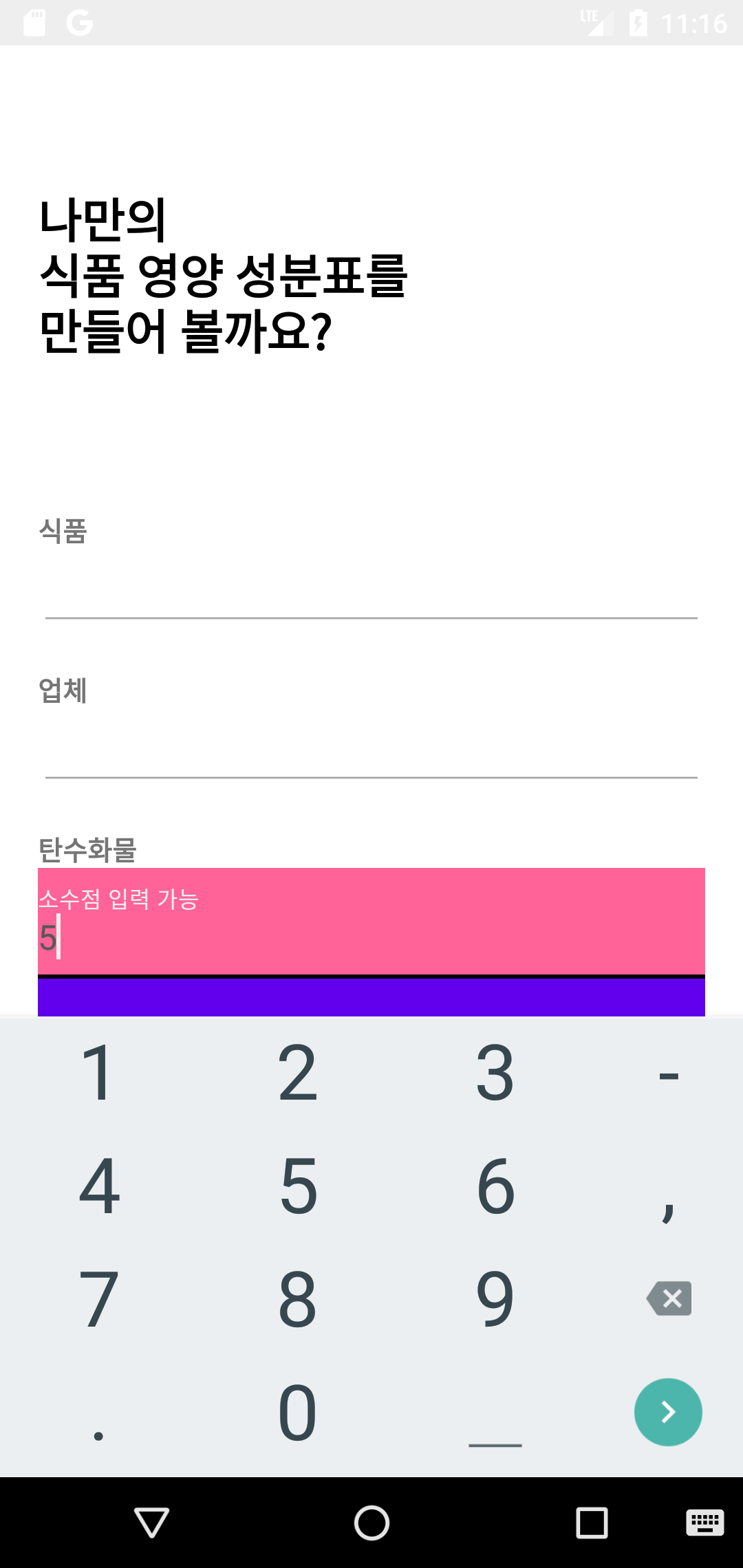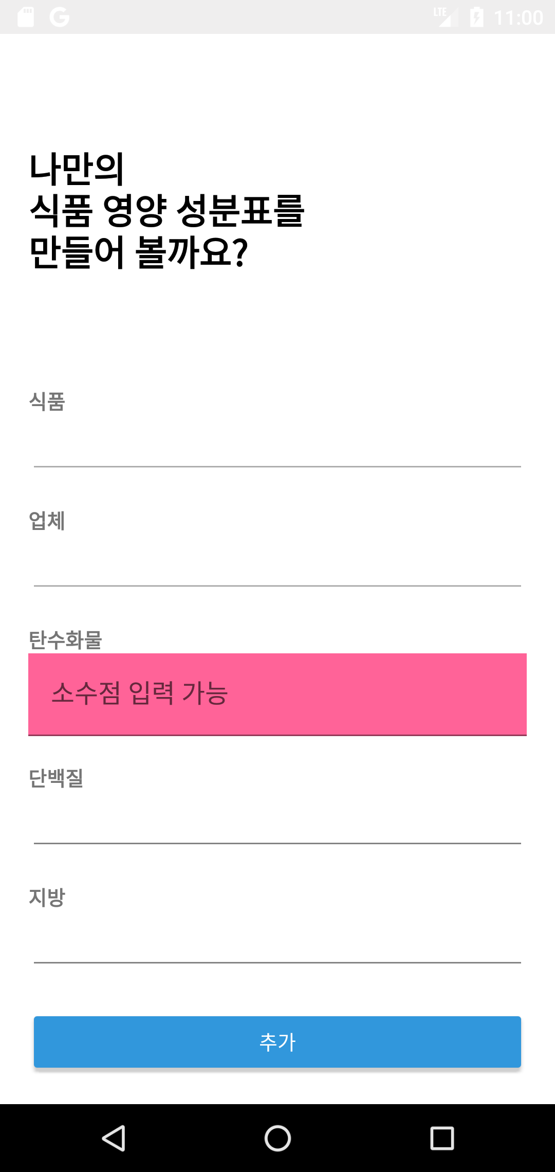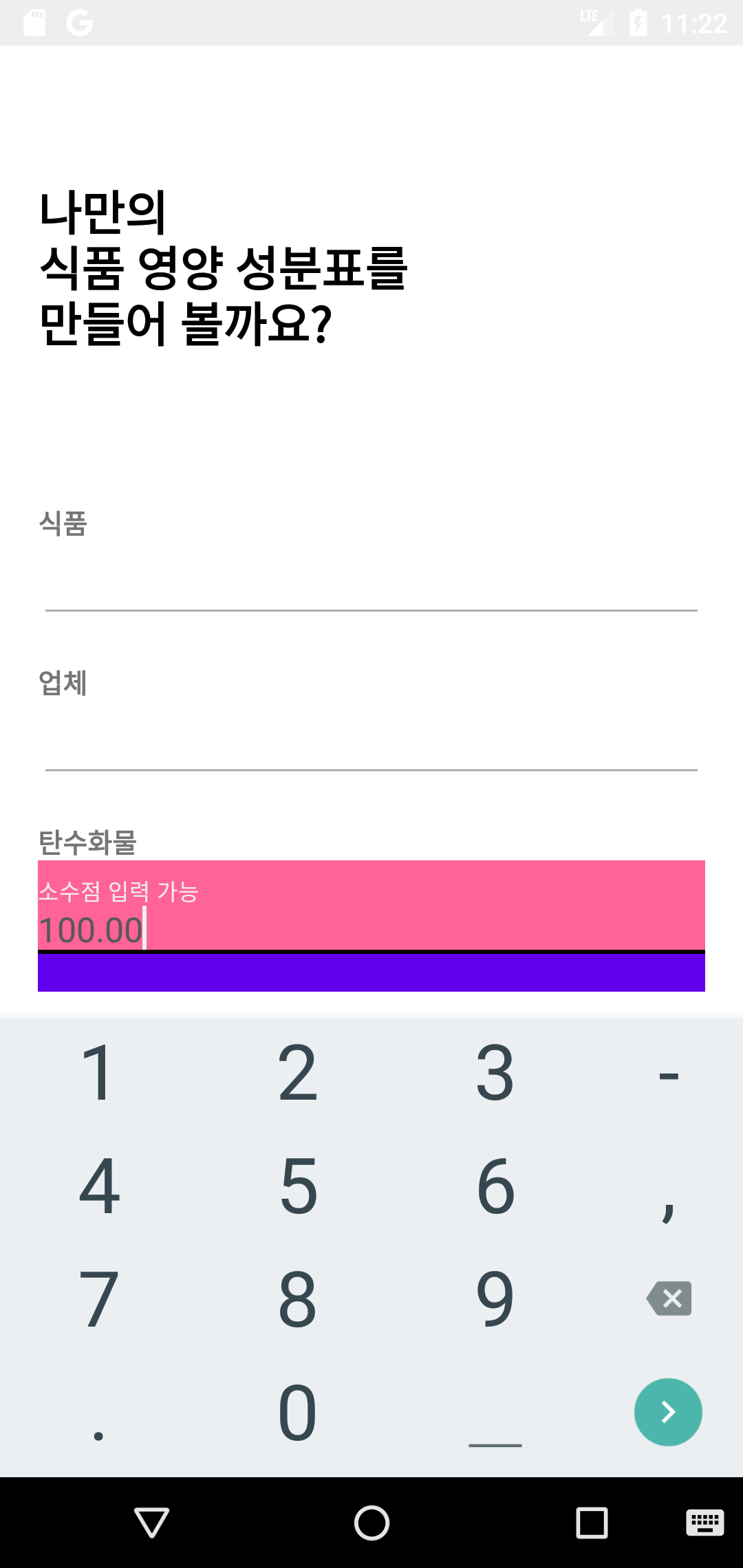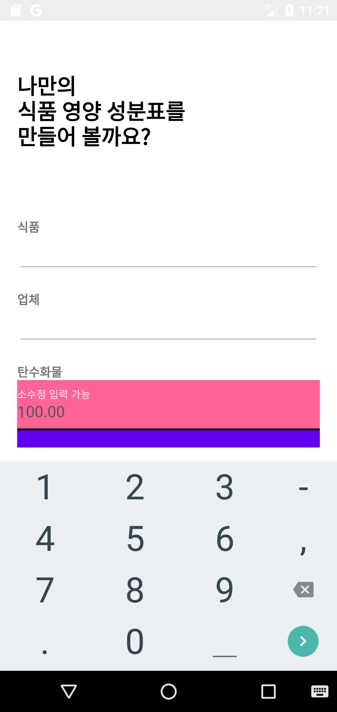 android:hint="소수점 입력 가능"
