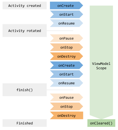 위 이미지를 보면 VIewModel이 UI 컨트롤러와 별도의 생명주기를 가지며 Activity 보다 더 긴 수명주기를 가지는 것을 알 수 있습니다.