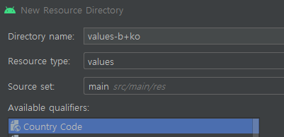 values/에서 Resource File을 생성하는데, Directory name을 위에서 생성한 values-b+ko 디렉터리에 strings.xml 추가합니다.